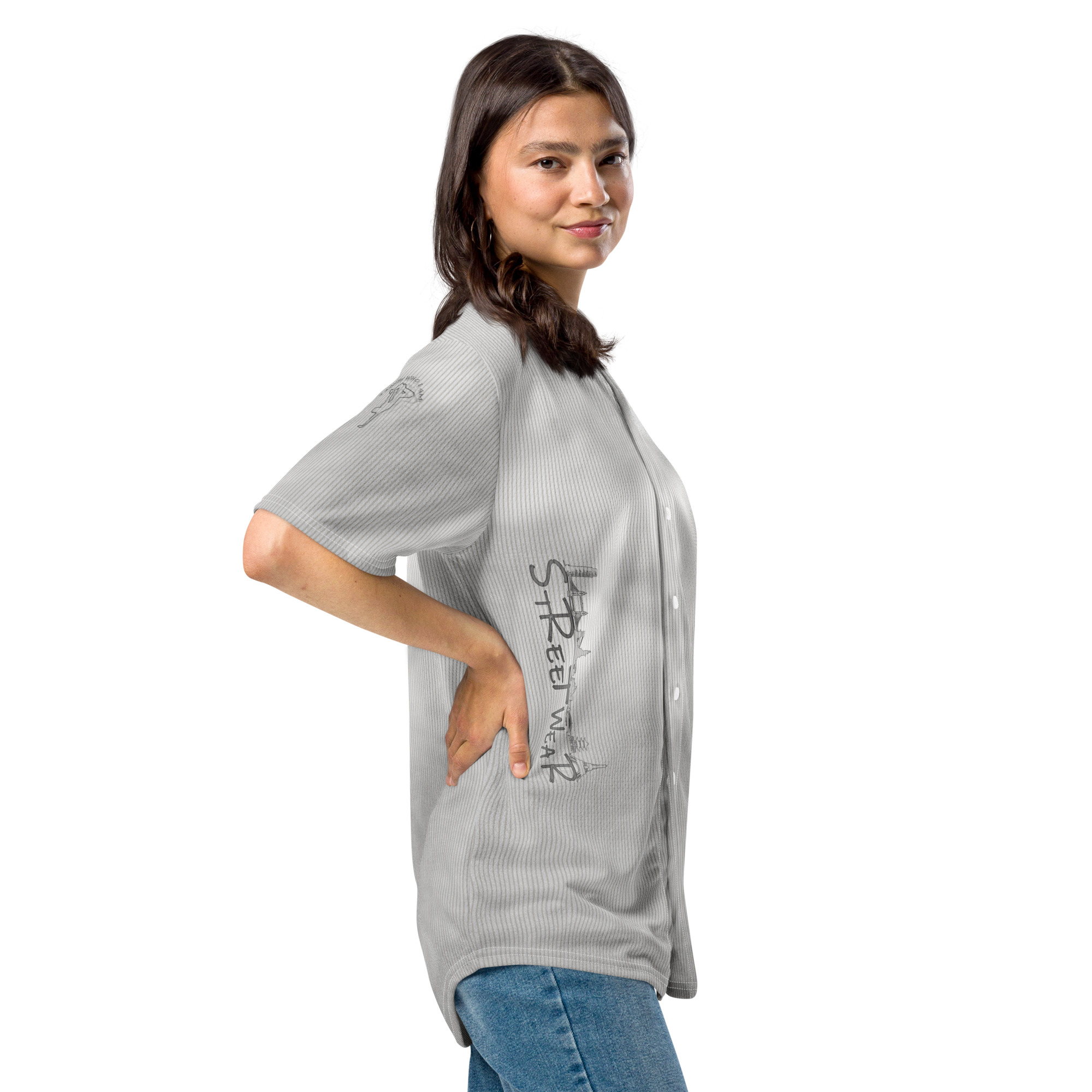Maillot « Streetwear BW » inspiré de l’univers baseball, manches courtes et coupe structurée.
