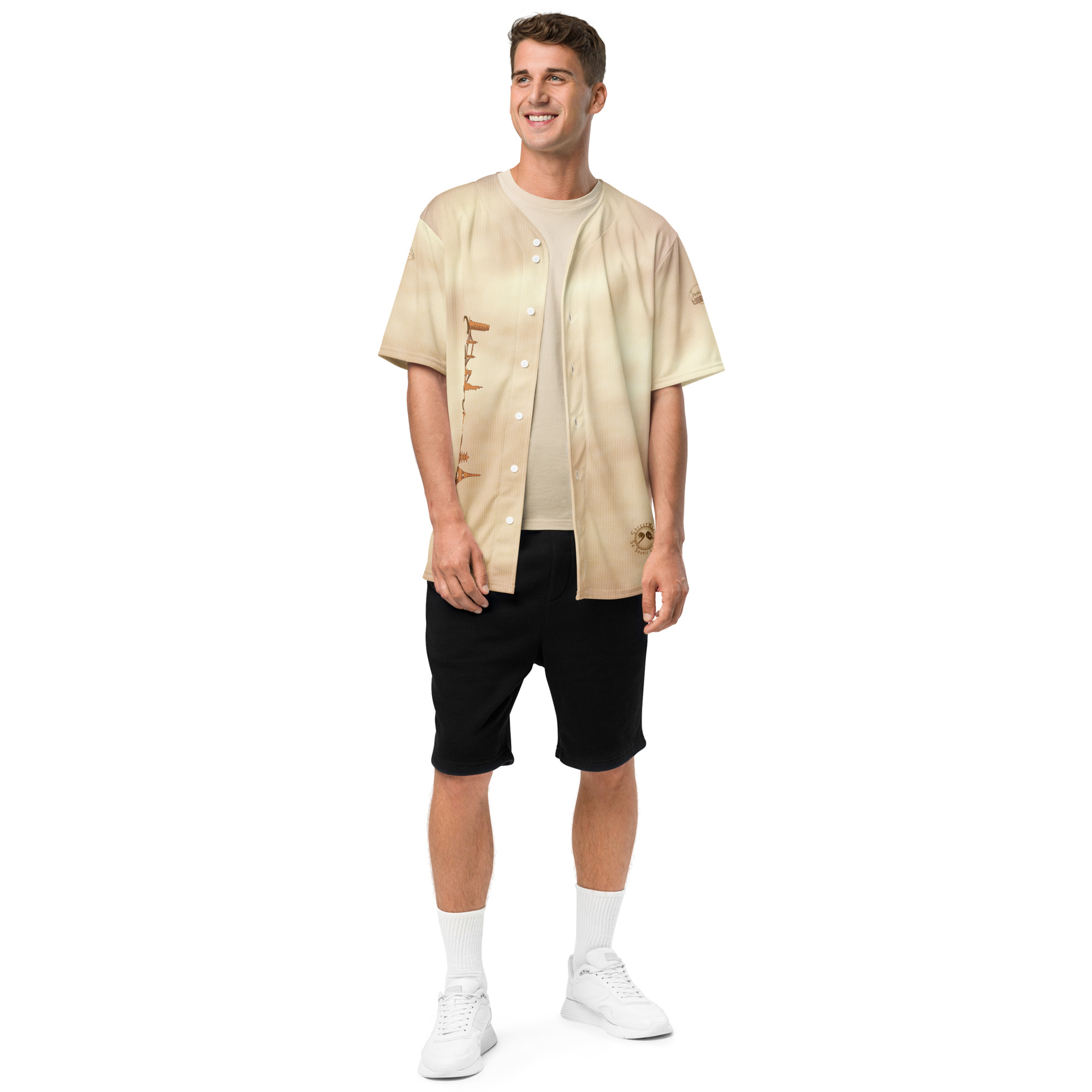 Maillot « Streetwear lumiĂšre matinale » inspirĂ© de lâunivers baseball, manches courtes et coupe structurĂ©e.
